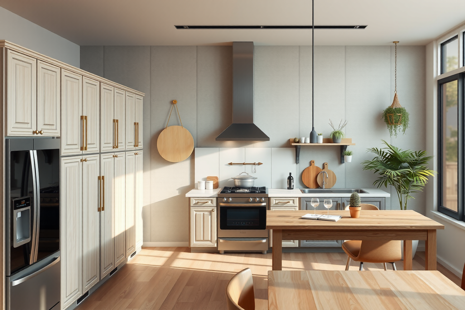 Además, la integración perfecta de la luz natural con el estilo refinado y despejado de una cocina minimalista sienta las bases de un entorno armonioso y equilibrado que favorece la creatividad culinaria y las interacciones sociables. Al crear un diálogo visual y sensorial entre los ámbitos interior y exterior, puedes establecer una fuerte sensación de continuidad y coherencia espacial, en la que el juego de la luz y los elementos naturales realza la belleza y la tranquilidad inherentes al diseño minimalista.